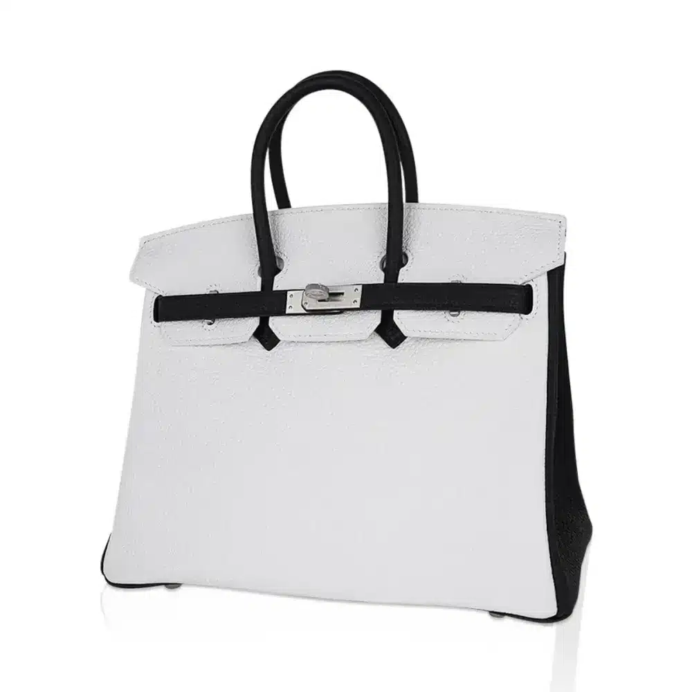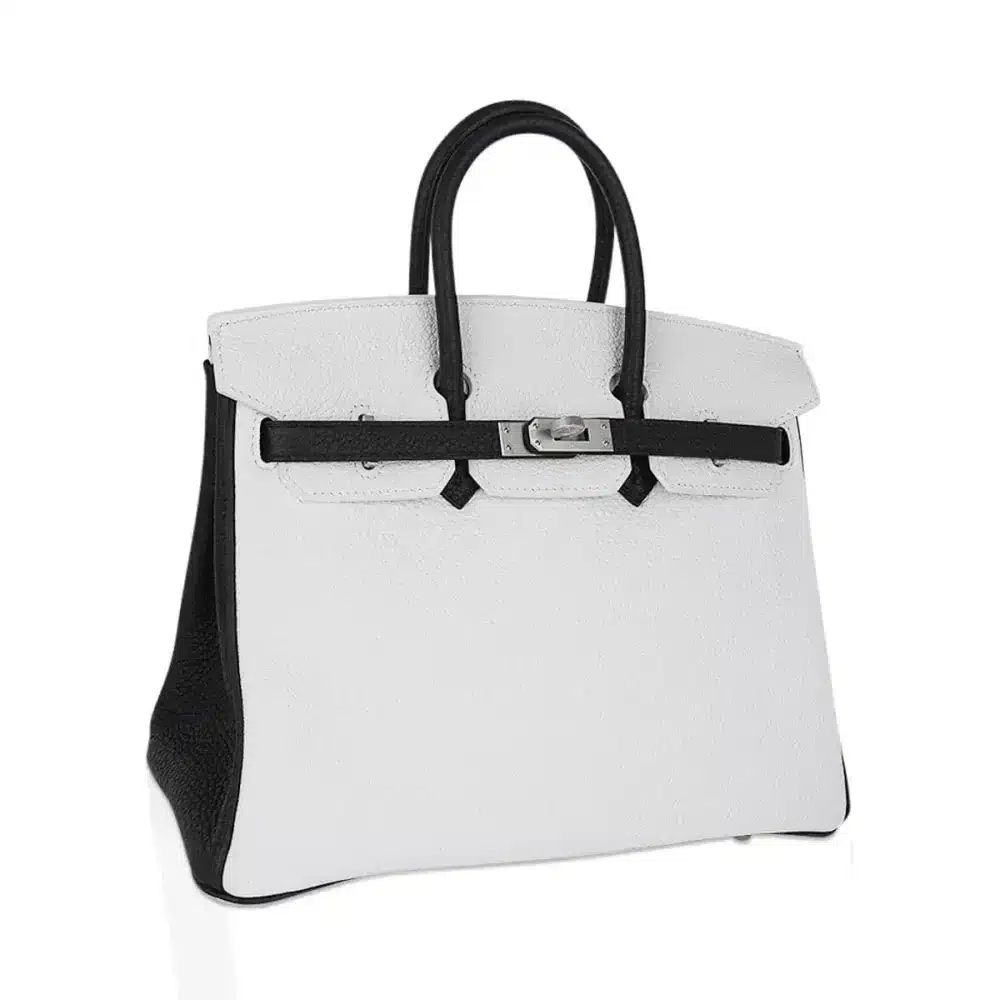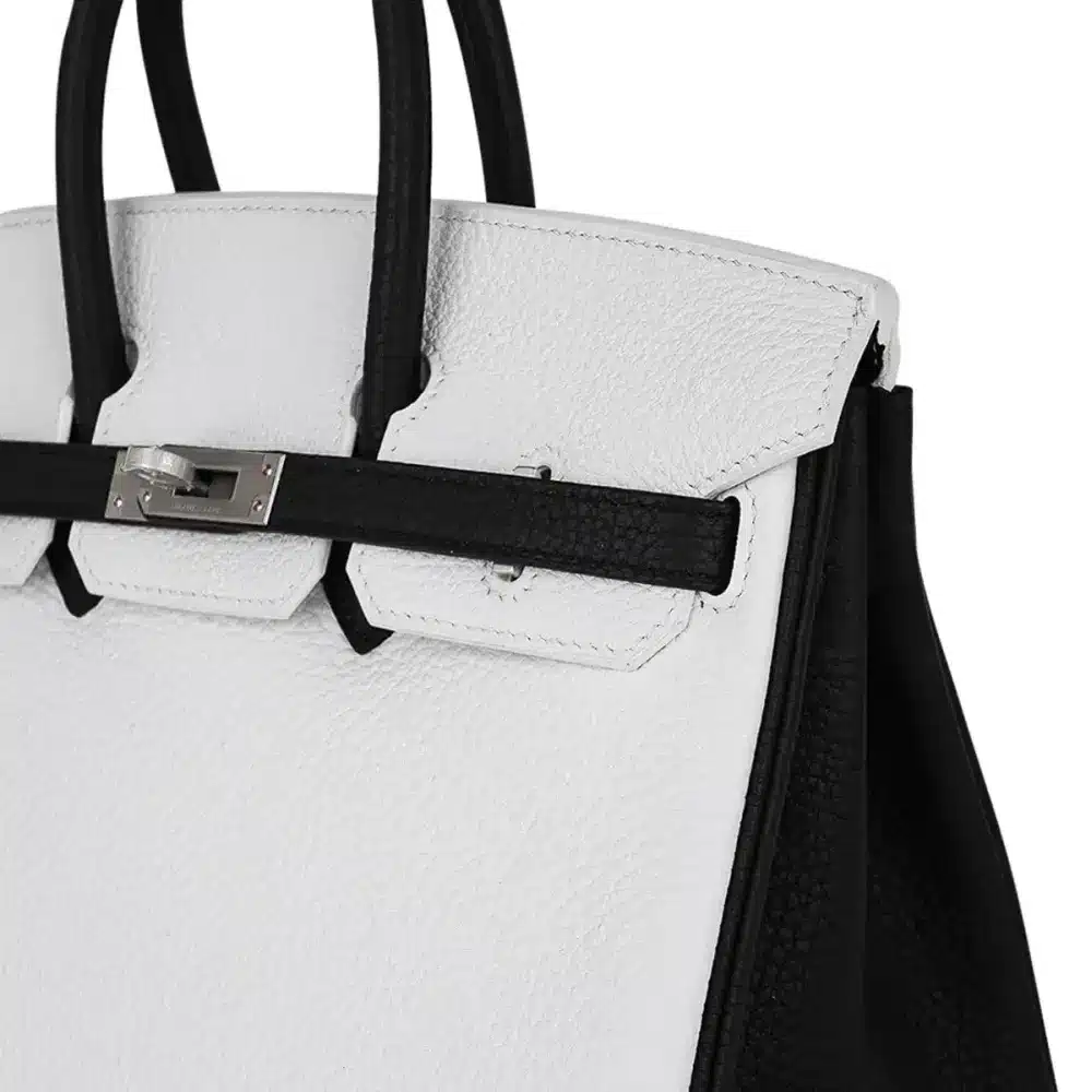 Birkin 25 HSS Special Order: White & Black Clemence Leather Masterpiece