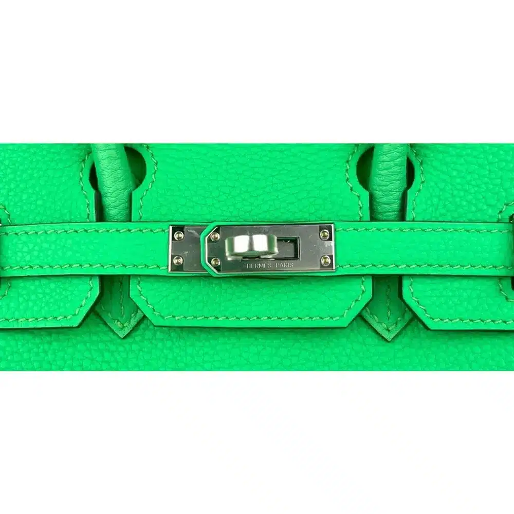 Every detail of this “Stealth Wealth” essential speaks to heritage craftsmanship. From the hand-rolled handles to the substantial weight of the sangles and touret, the tactile experience is one of pure substance. The Vert Comics shade provides a refreshing, modern pop of color while remaining anchored in the timeless Hermès aesthetic. This is not merely a handbag; it is a curated asset for the discerning collector who values the intersection of bold artistry and meticulous technical construction.