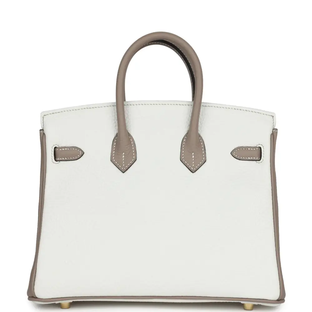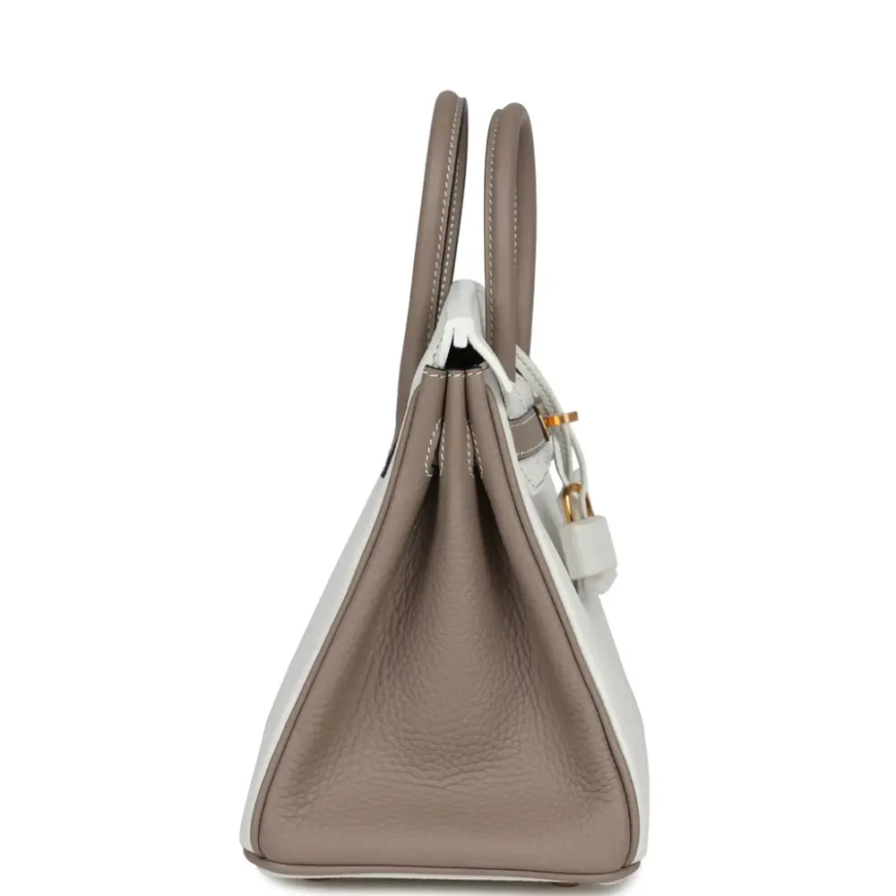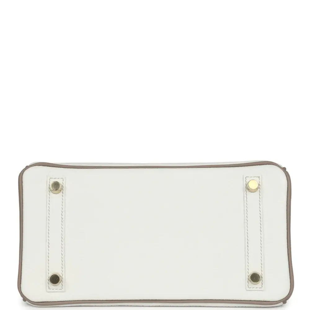 Birkin 25 White & Gris Tourterelle Clemence with Gold Hardware