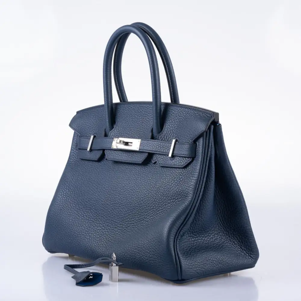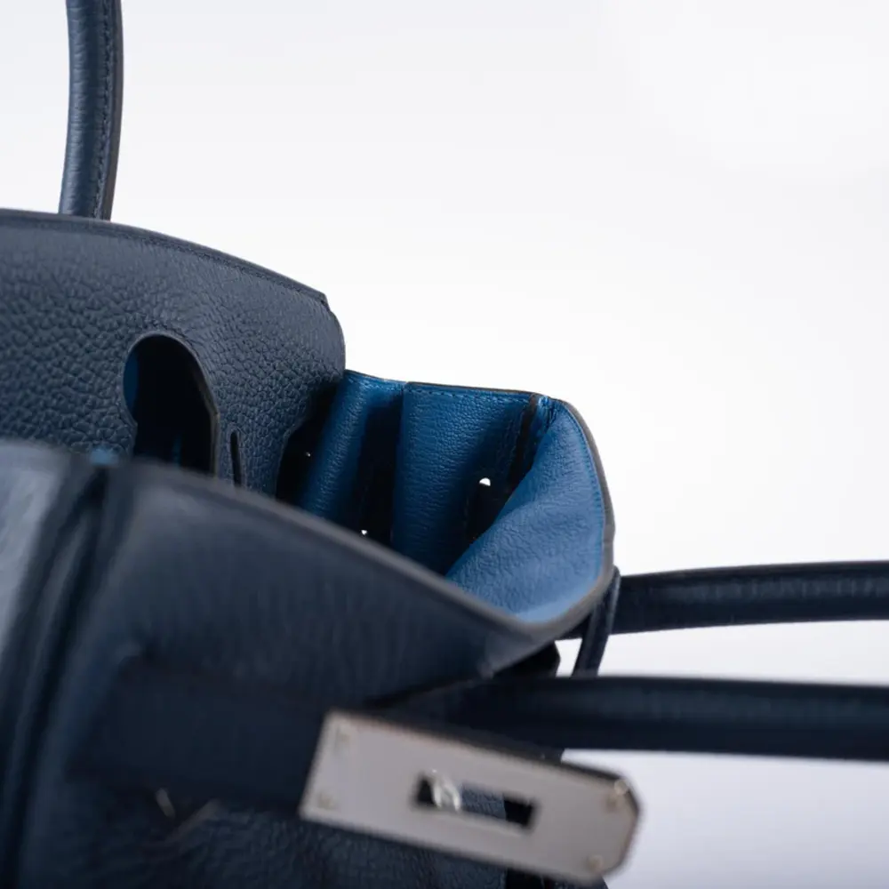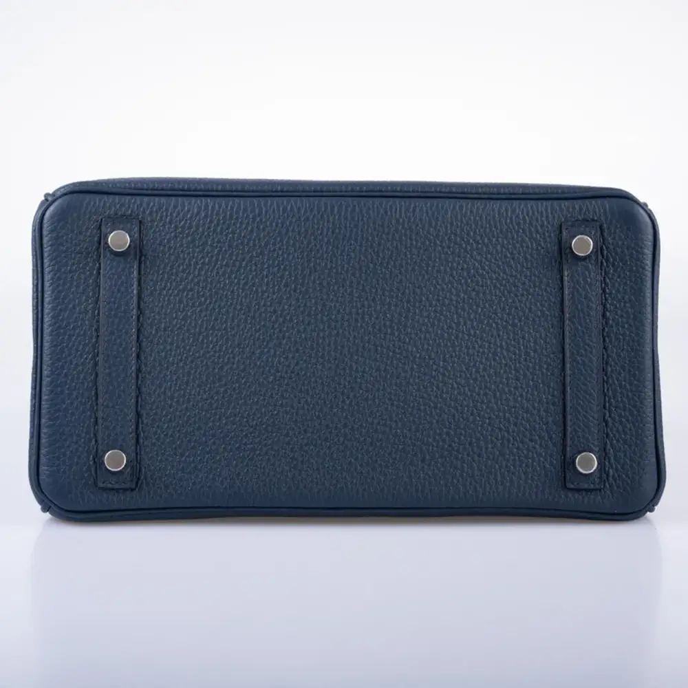 The weight of the cool-toned Palladium Hardware serves as a testament to the artisan’s dedication to quality; every rivet and plate is polished to a mirror-like finish. From the hand-painted edges to the saddle-stitched seams, this Birkin 30 Navy Togo PHW is not merely an accessory, but a generational heirloom. Secure this rare combination for your collection and experience the pinnacle of leather craftsmanship.