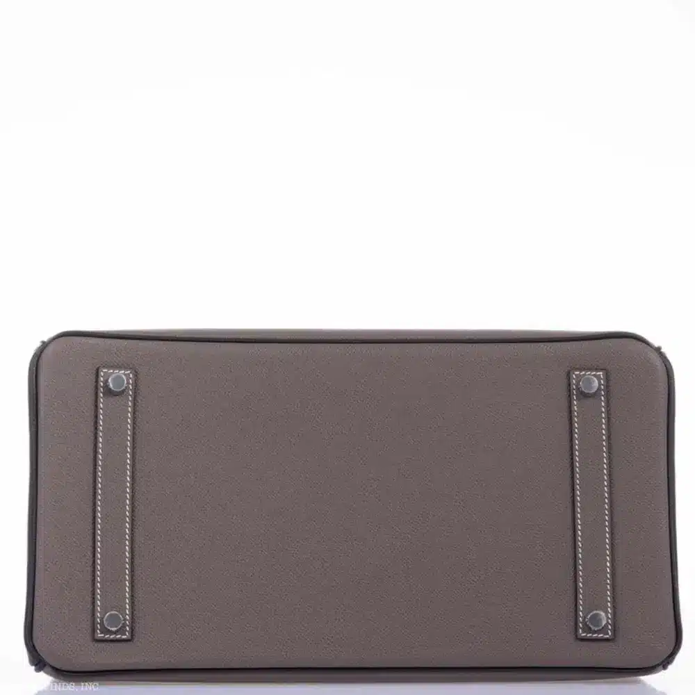 The Birkin 30 in Etain and Black Togo leather is a masterclass in tonal sophistication. Crafted for the discerning collector who understands the nuances of “Stealth Wealth,” this piece features the iconic Etain—a versatile, earthy grey—perfectly complemented by the deep, obsidian tones of Black Togo. The Togo leather itself is prized for its pebbled grain, offering a supple yet resilient texture that maintains its architectural silhouette over decades of use.