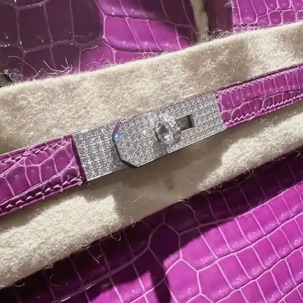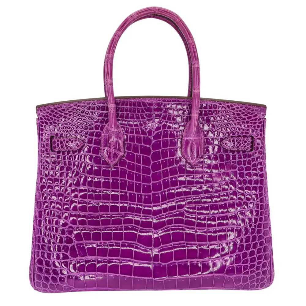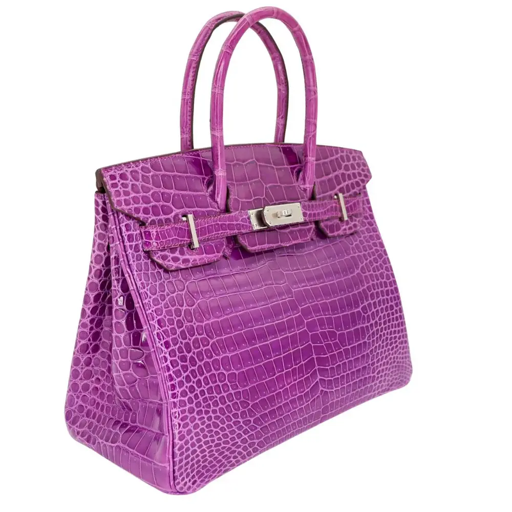 The Essence of Excellence The Birkin 30 in Violet Shiny Porosus Crocodile is not merely a handbag; it is a masterclass in artisanal heritage and “stealth wealth” sophistication. Sourced from the finest skins, the Porosus crocodile scales are meticulously buffed to a high-gloss brilliance, catching the light with a depth of color that only a true purple exotic skin Birkin can command. The vibrant Violet hue offers a regal yet modern aesthetic, perfectly balanced by the cool, architectural weight of the Palladium hardware.