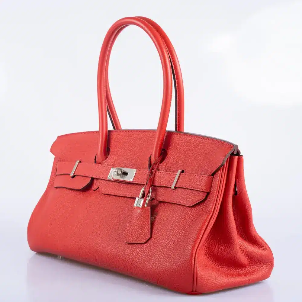 Whether draped effortlessly over the shoulder or carried by hand, this authentic Hermes JPG Birkin 42 commands quiet authority. The striking Vermillion hue acts as a statement of confident stealth wealth. Perfect for the discerning collector, this Clemence leather Shoulder Birkin seamlessly bridges the gap between everyday functionality and exceptional, architectural design.