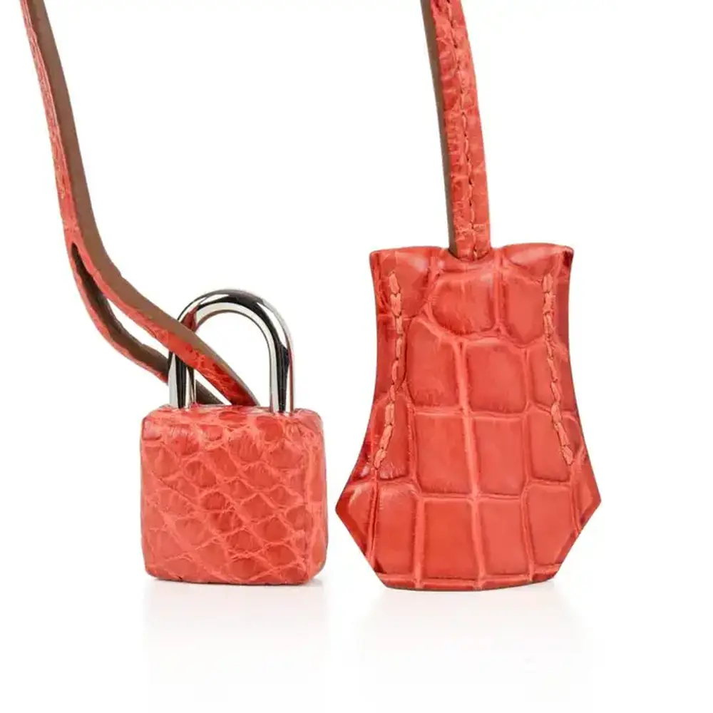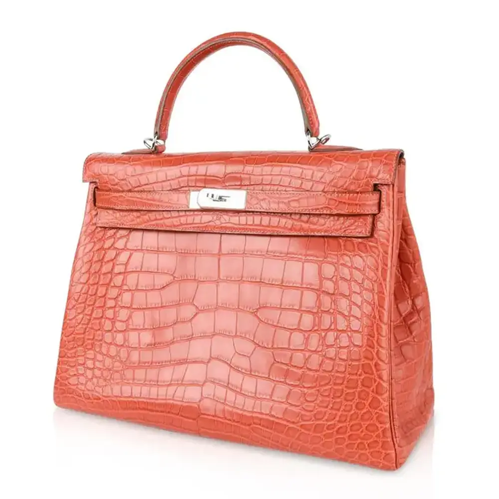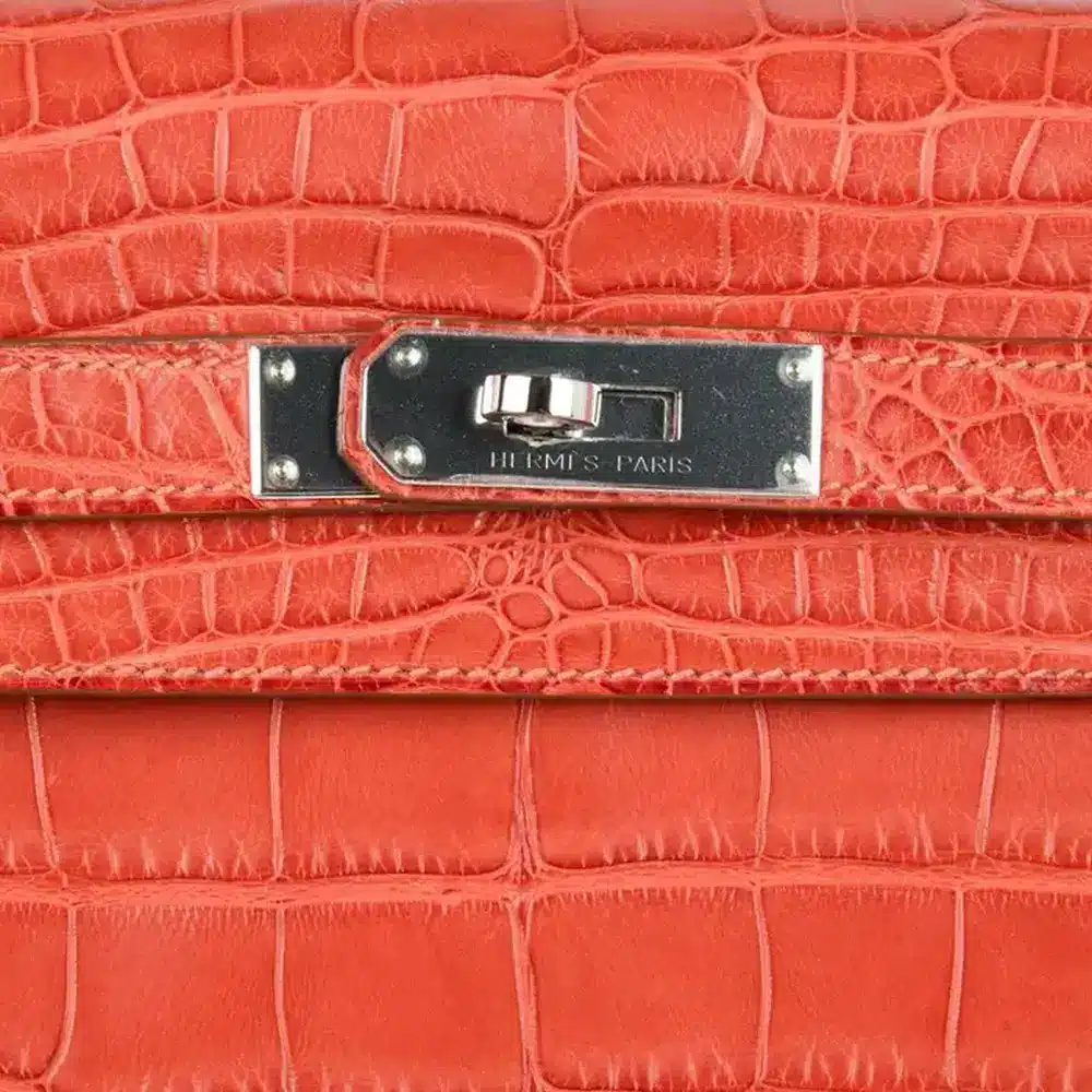 Among the most prized materials used for Hermès bags is Porosus crocodile leather. Recognizable by the tiny pores found on each scale, this exotic leather is sourced from crocodiles in Australia, renowned for their large size and smooth bellies—perfect for crafting larger Birkin and Kelly bags.