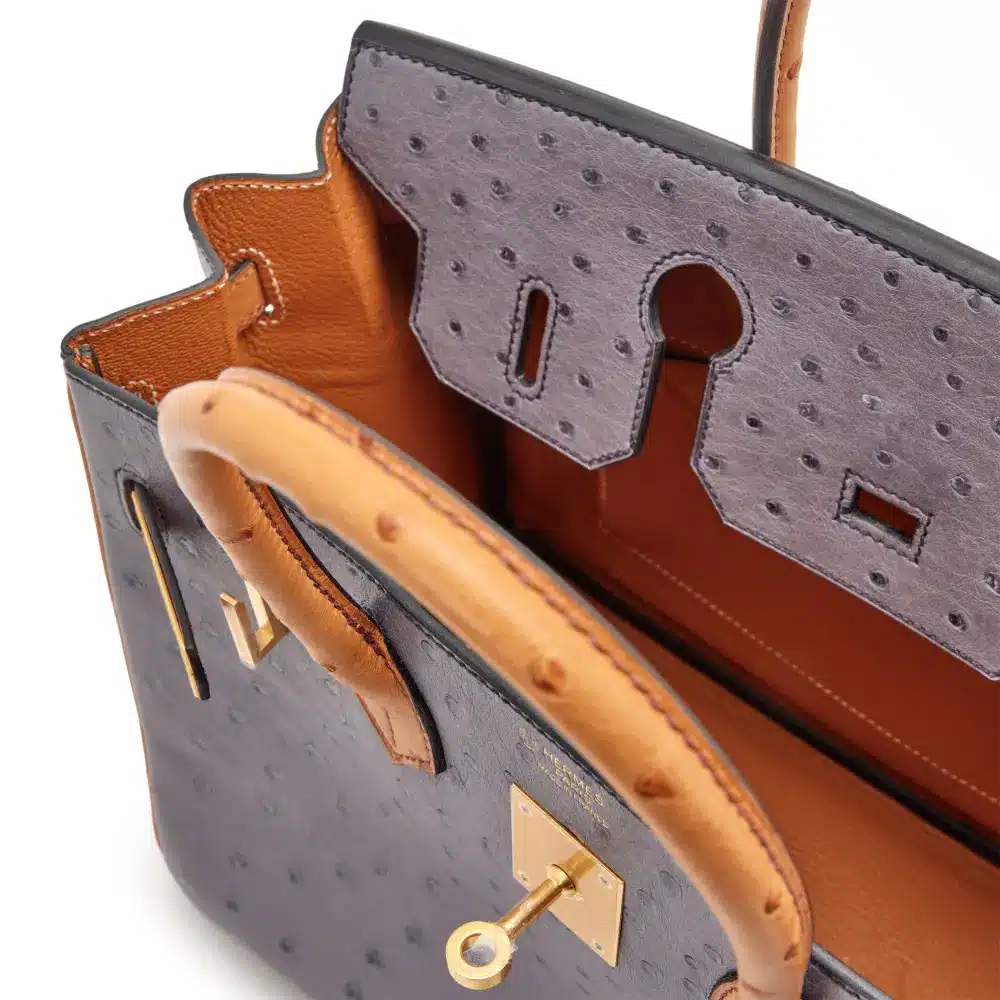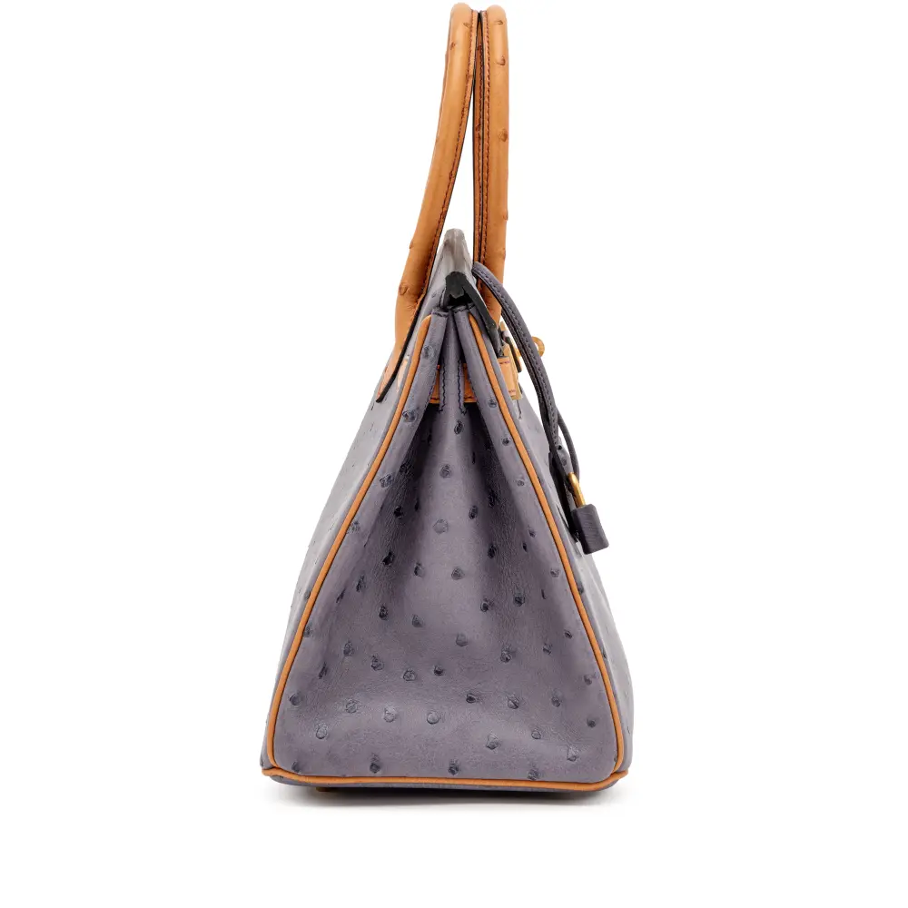 Special Order (HSS) Hermès Birkin 30: Gris Agate & Saffron Ostrich with Gold Hardware