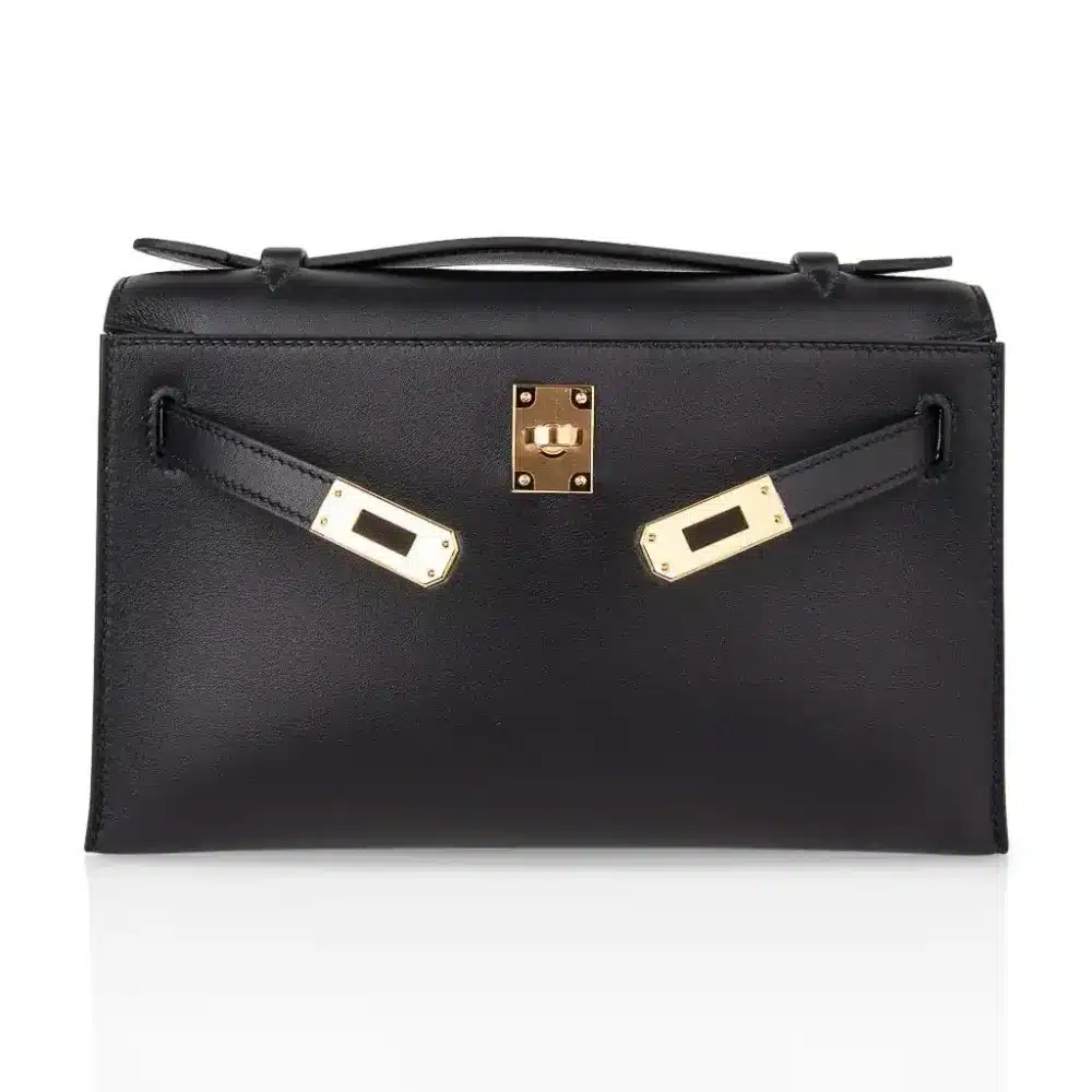 The Kelly Pochette in Noir Swift represents the pinnacle of understated evening elegance. Crafted for the discerning collector, the “Stealth Wealth” aesthetic is defined by the buttery, fine-grained texture of premium Swift leather, which absorbs color to create the deepest, most saturated Noir finish imaginable. Every stitch is a testament to heritage techniques, ensuring a silhouette that remains structured yet supple to the touch.